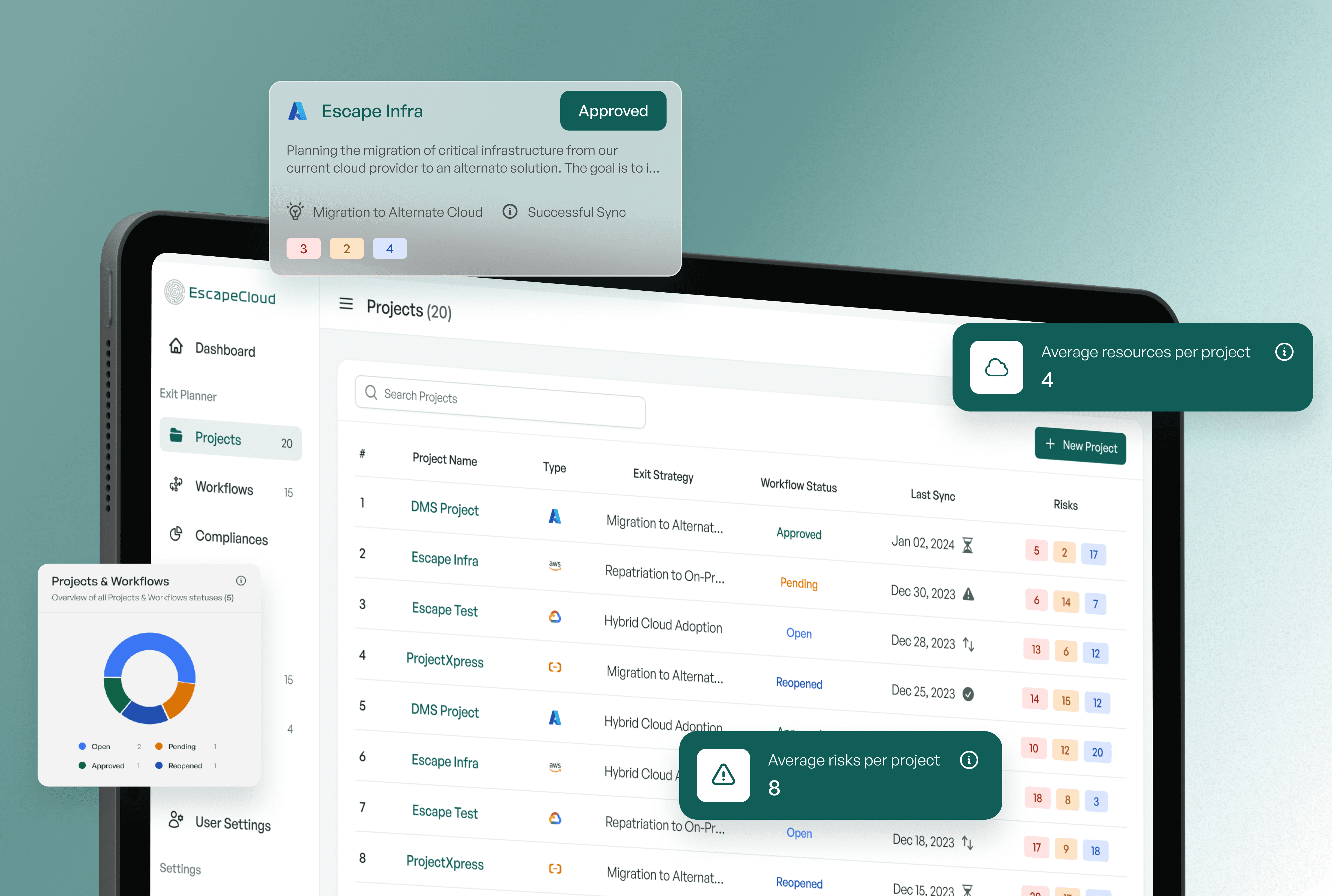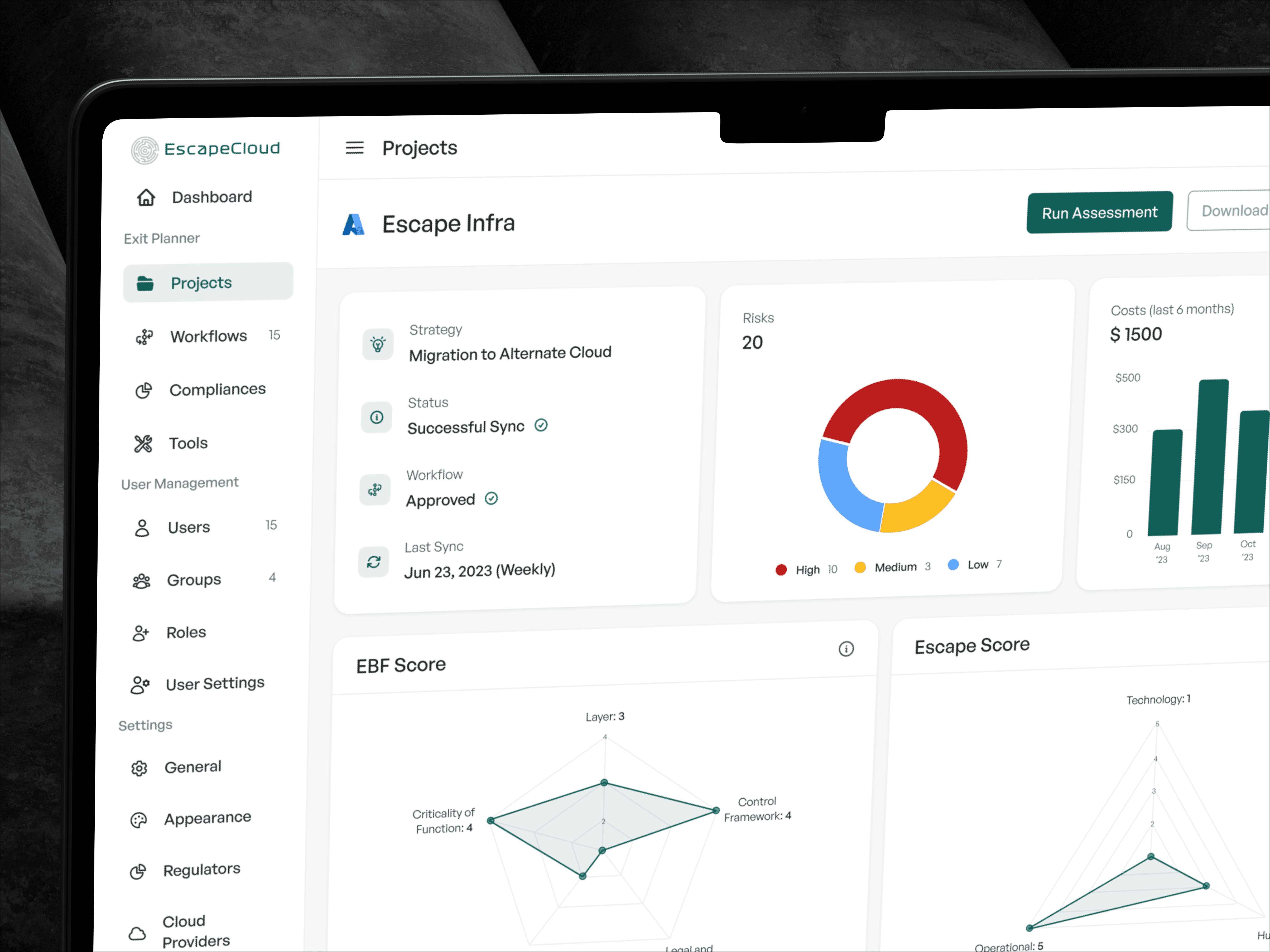 EscapeCloud is a sophisticated software-as-a-service (SaaS) solution specifically tailored for financial institutions, providing seamless and automated cloud exit assessments compliant with european banking authority (EBA) and national regulatory bodies' requirements. Our solution empowers financial institutions to effectively leverage cloud service provider outsourcing while ensuring robust development of cloud exit strategies and plans.