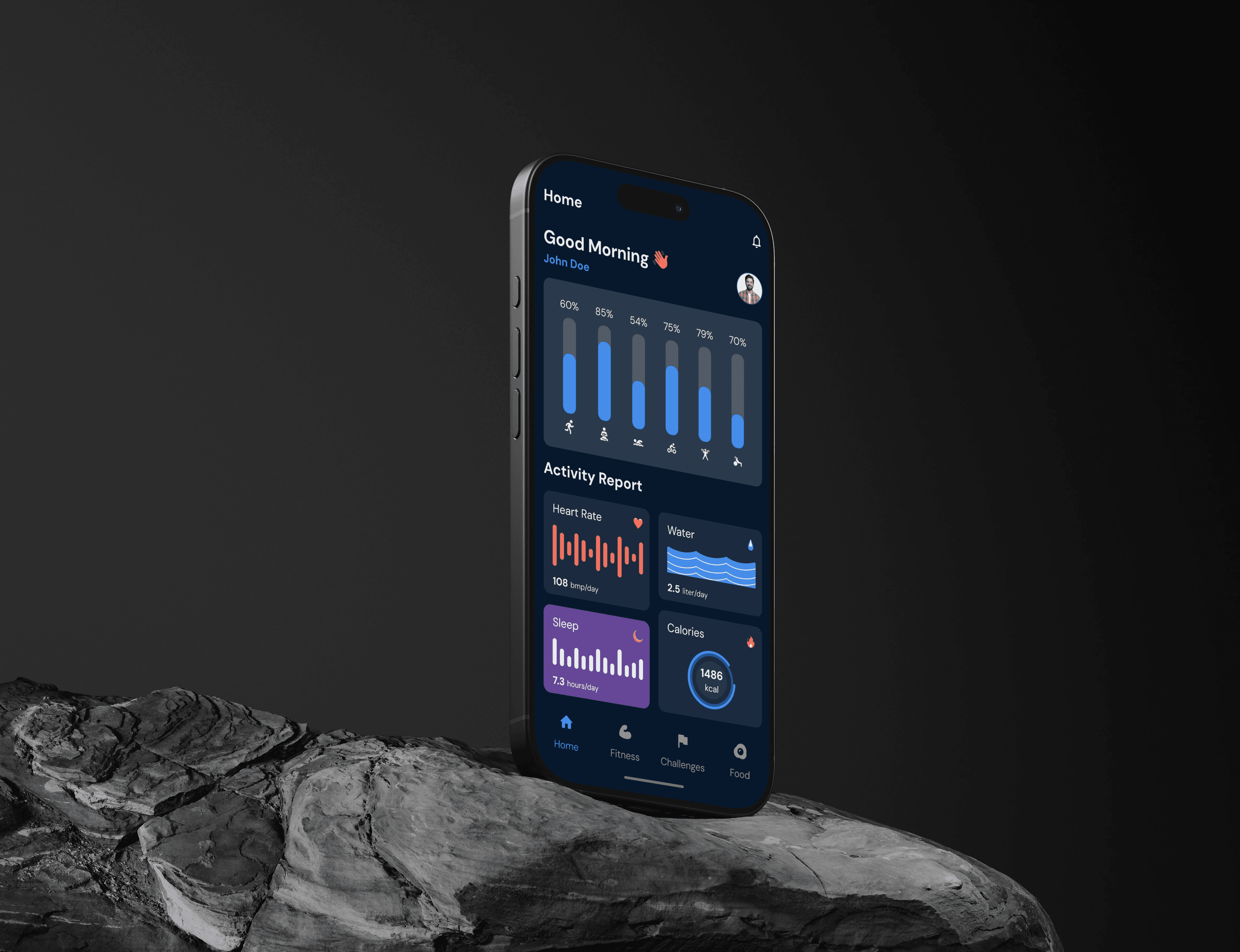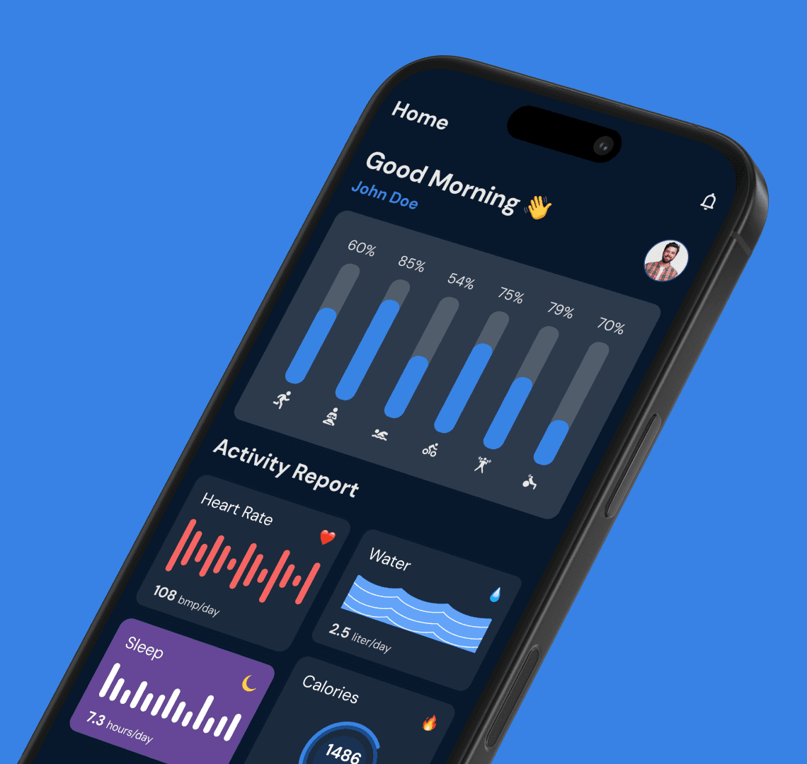 Dynamic dashboards: Centralized fitness overviews with heart rate, calorie intake, and activity tracking.